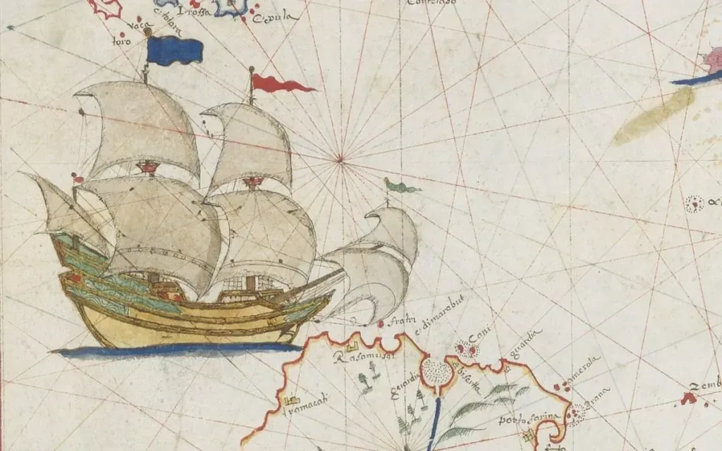 First, a long Atlantic coastline, basically, a giant balcony overlooking the ocean where sailors learned early on how to read the winds and tame the waves. Add to that a few navigation breakthroughs : the caravel, the compass, the astrolabe… in short, the ultimate explorer’s starter pack. And then there was this slightly crazy but very profitable obsession : finding a new route to India and its spices. Because yes, pepper burns your tongue… but it fills your purse.